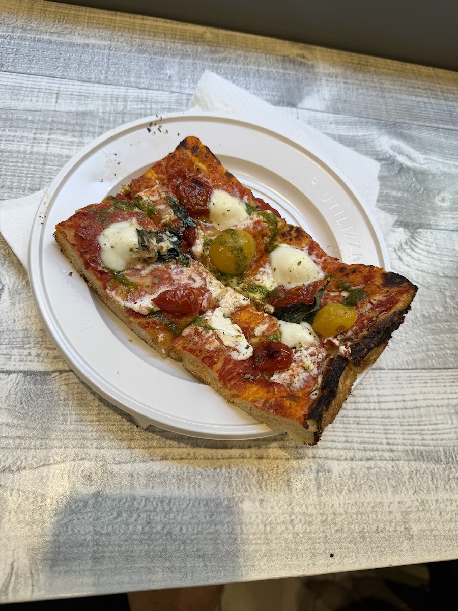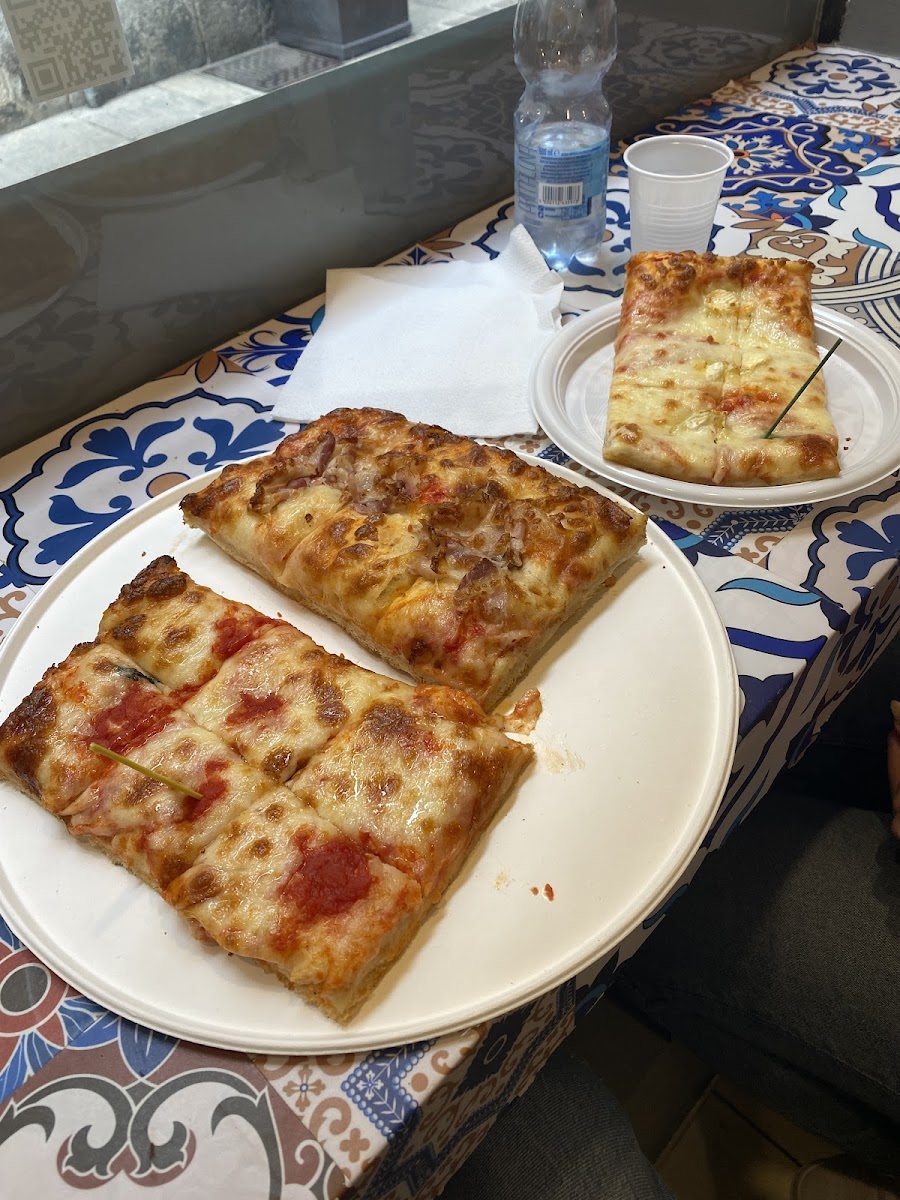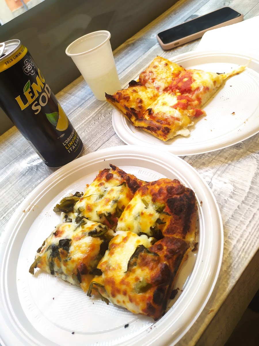 Great spot for a quick bite, especially if you’re on the go as there is the option to buy pizza by the slice too rather than a whole pizza which is super convenient. Prices are reasonable too. We tried the Margherita, the mozzarella and basil (my personal favourite), and the focaccia, which was also tasty. It’s not the best pizza I’ve ever had, but it’s a solid option—especially handy for feeding kids without committing to a whole pizza. The staff were lovely and polite. It is a small place and there is some seating there should you want to eat in but mostly a takeaway place.
